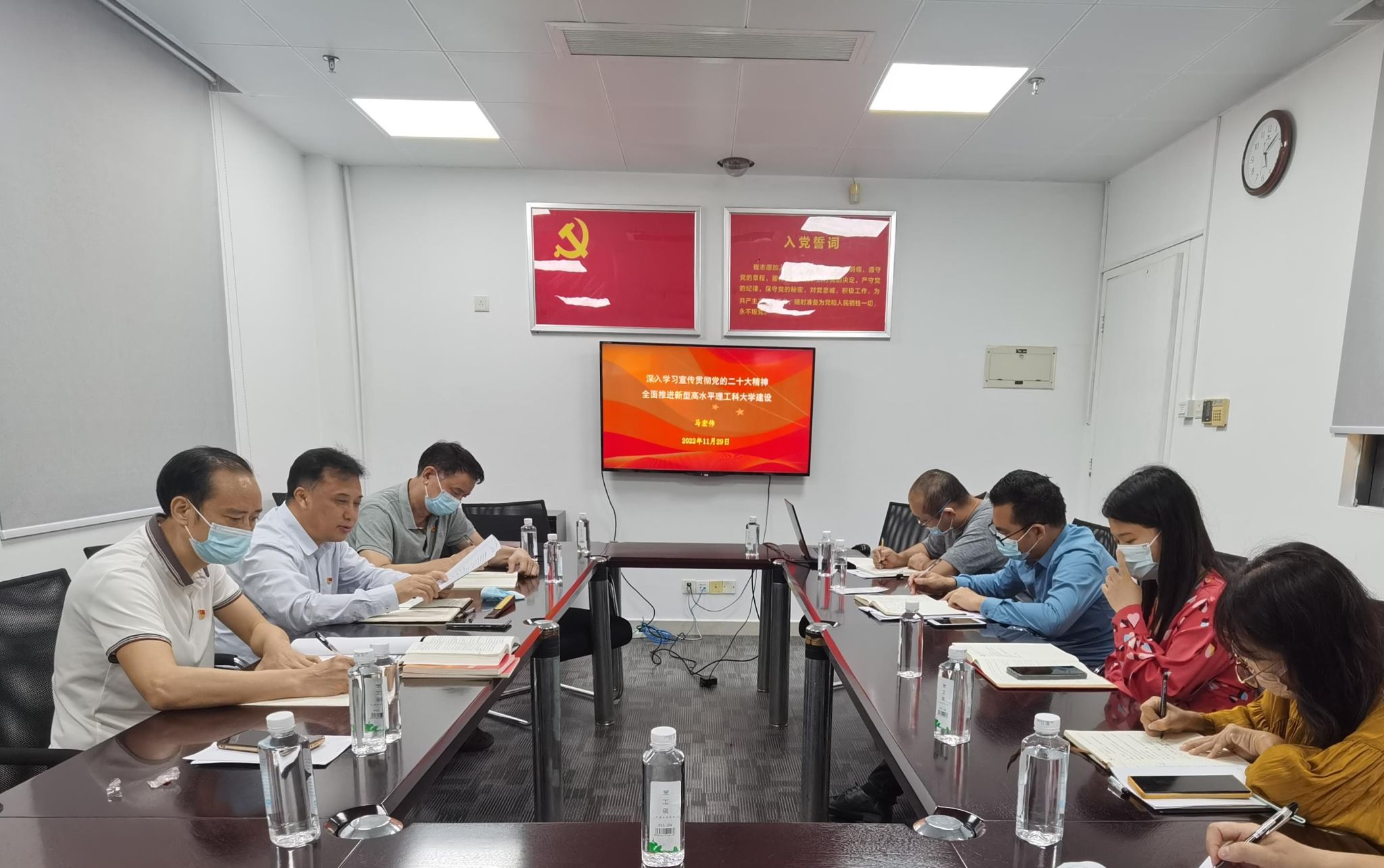 11月29日,机关高教所联合党支部举行“深入学习宣传贯彻党的二十大精神”主题党日活动。党委副书记、校长马宏伟同志以普通党员身份参加,与支部党员学习交流,并以“深入学习宣传贯彻党的二十大精神,全面推进新型高水平理工科大学建设”为题为大家讲专题党课。