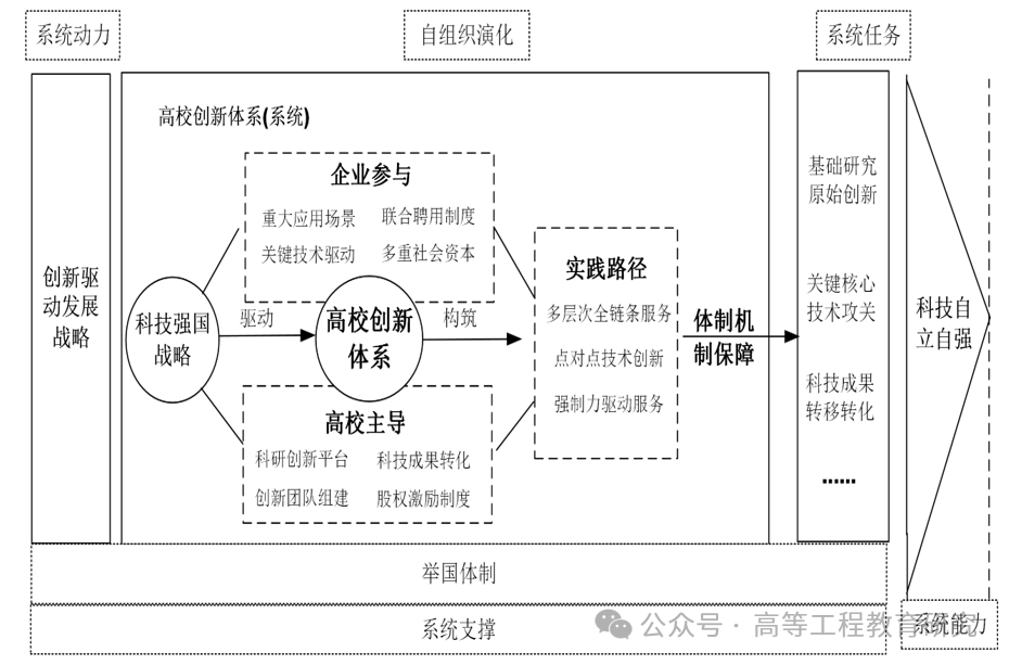 总体而言,高校主导、企业参与的创新体系充分发挥了高水平研究型大学或国家科研机构的科技供给和人才供给优势,同时紧密结合了企业的技术需求和市场需求。通过产学研协同攻关,高校创新体系在关键核心技术突破和体制机制创新方面展现出显著优势,能够有效推进教育、科技、人才一体化(图1)。