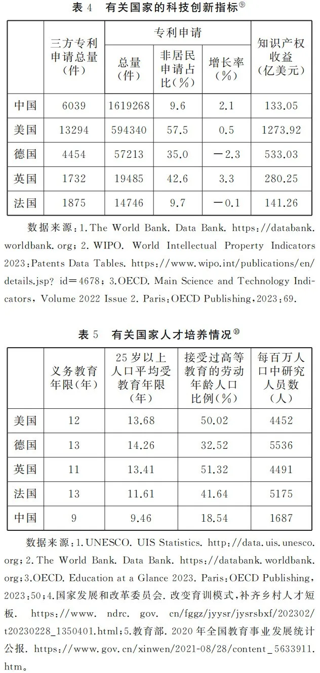 与此同时,也需注意到我国与世界重要教育中心之间的差距。统计数据显示,英国、法国、德国、美国的义务教育年限均在11年以上[40];25岁以上人口平均受教育年限均突破11年[41];接受过高等教育的劳动力人口比例均在30%以上,美国和英国甚至分别达到50.02%和51.32%[42];每百万人口中的研究人员数量也均在4000人以上[43]。这反映了我国在国民整体教育水平与高层次人才培养方面仍有较大的提升空间。