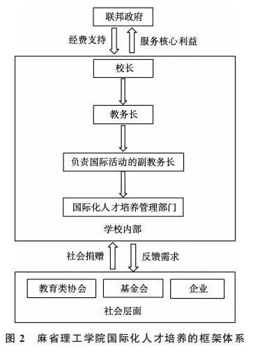 综上所述,政府、社会、学校分别通过扮演支持者、资助者与践行者的角色,共同构成了麻省理工学院国际化人才培养的框架体系(见图2)。
