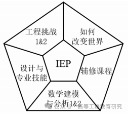 IEP以“全面集成”为核心要义,运用整体思维形成模块化学科体系架构。该框架突破了传统线性知识设计理念,通过跨专业交互和协作将多学科、多类型知识联结并产生新知识。五个模块以学科知识交叉融合的形式共同构成IEP集成核心(见图2)。IEP通过多个模块相互补充和融合,在工程教育中引入工程专业技能、基于问题和情景的学习、多样性和包容性工程项目及个人态度及反思等部分,打破学科“藩篱”,通过对不同学科知识提炼和融合,形成具有优势和特色的模块化学科知识体系,实现多学科知识与能力集成培养,从而取得有价值的科研成果,促进科研生产力发展,打造全链条、体系化集成创新思路。IEP这项工程专业变革计划受到业内人士及专家学者一致好评,MIT访谈178名具有世界领先工程项目知识和经验的全球思想领袖后,将这一改革视为“工程教育的优秀典范”。[14]