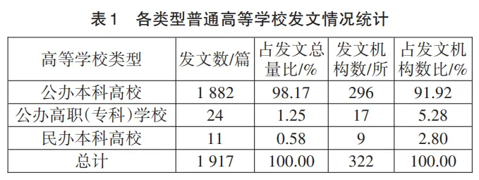 在筛选后获得的2066篇高等教育类科研论文中,剔除第一作者署名单位为境外高校以及政府部门、教育服务机构、科研院所、军事院校等机构的149篇论文,最终保留第一作者署名单位为境内普通高校的高等教育科研类论文1917篇,以此作为2024年全国普通高校高等教育科研论文统计的基准数据。